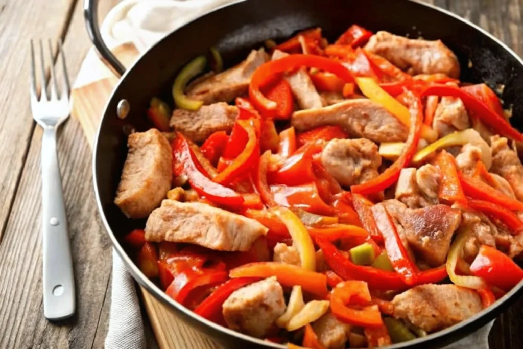3. Cuisson des légumes : Dans la même poêle, ajoutez les oignons et les poivrons, et faites-les cuire jusqu’à ce qu’ils soient tendres.
